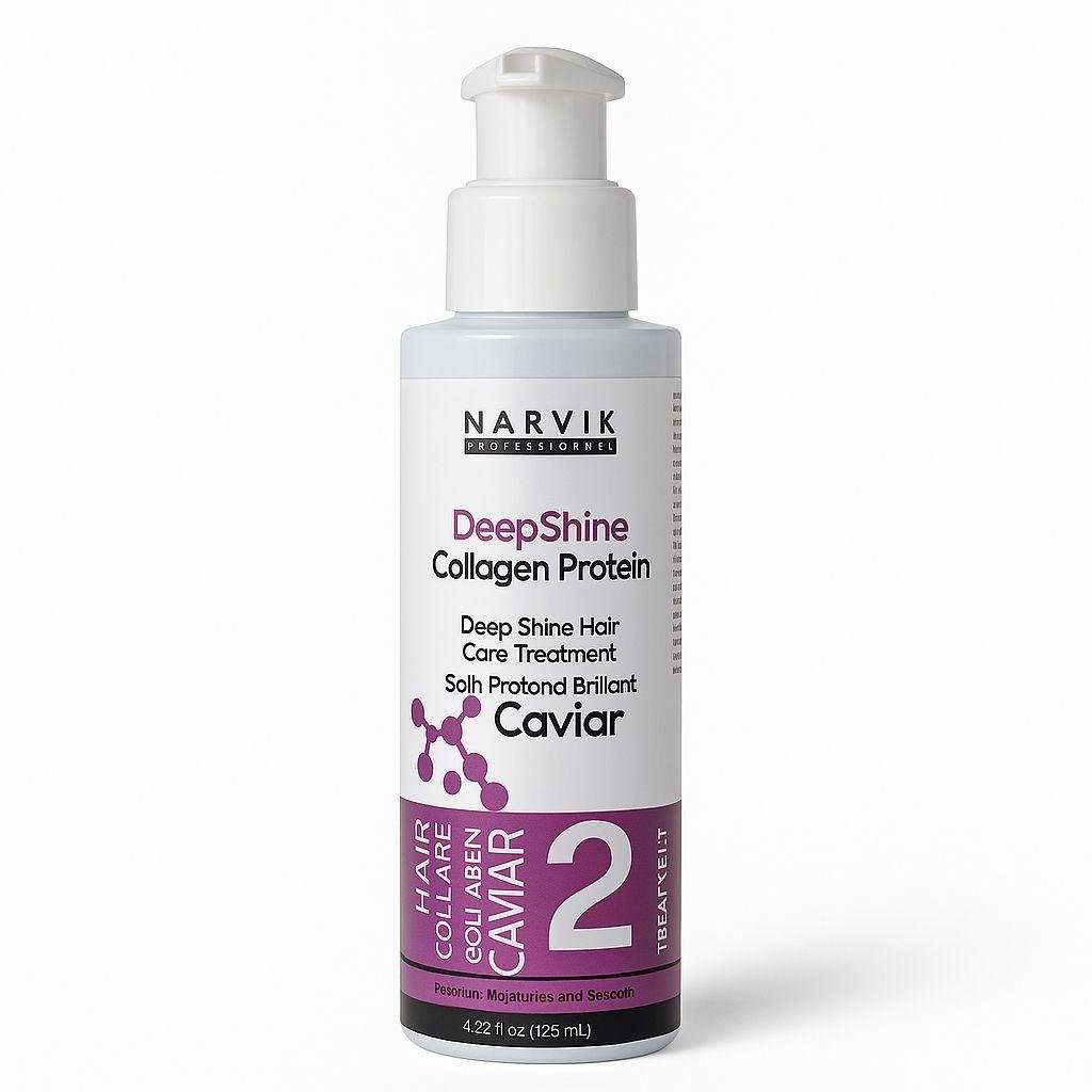 Caviar hair treatment, collagen protein hair mask, Narvik DeepShine, hair repair treatment, professional hair care, shine and smoothness, deep hydration, damaged hair repair, collagen for hair, caviar extract shampoo treatment.